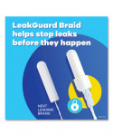 Stay protected with a tampon that stop leaks, working for a maximum of 8 hours, even overnight. Unique Antigravity LeakGuard™ Braid helps catch leaks and send them back to the core. Anti-slip grip for easy insertion. CleanGuard layer surrounds the core for an extra layer of protection. FormFit protection helps close gaps that can cause leaks. Features a smoother plastic applicator for comfortable insertion. Discreet, purse-resistant wrapper with easy-to-open tabs.