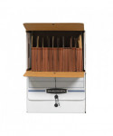 Drop-front lid provides easy access to end-tab patient files and medical records. Designed for shelf storage, these sturdy units stack two high. Center divider holds file folders upright for easy organization. String & button closure keeps files securely stored.