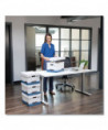 Double-end, 1 1/2-side, double-bottom construction. Medium-duty for use with or without shelving. FastFold® quick and easy assembly. Deep, locking lift-off lid stays in place for secure file storage. Rolled edges add strength and prevent paper cuts.