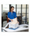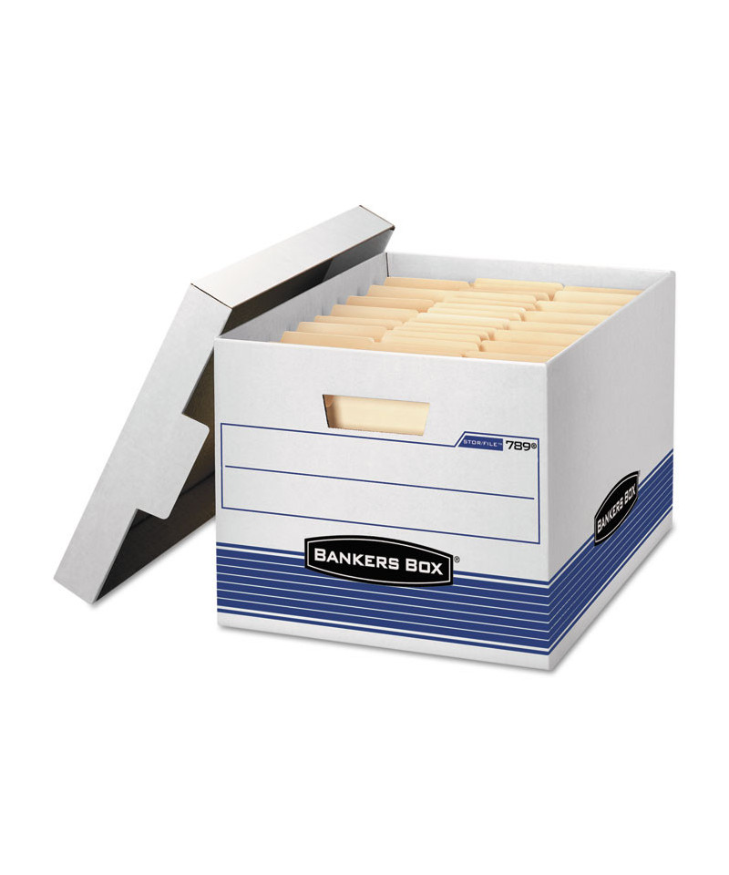 1 1/2 end, 1 1/2 side construction. Medium-duty for use with or without shelving. Quick set-up assembly. Deep, locking, lift-off lid stays in place for secure file storage. Rolled edges add strength and prevent paper cuts. Great for storing files in the home or the office, or any other items you need to store and keep in a convenient place. Made from corrugated cardboard.