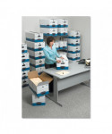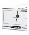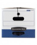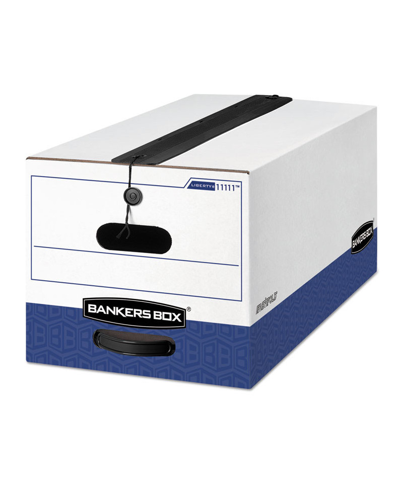 Three-inch seal protects stored files from dust and dirt and ensures a flat top for stable stacking. Maximum security design with string and button closure keeps contents secure, even if box is overturned. Up to 50% stronger than other string and button boxes for stacking without shelving. FastFold® quick and easy assembly. Reinforced, plastic handle makes it easy to pull a box out of a stack or off shelving. Ensures flat top for stable stacking.
