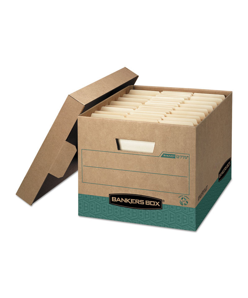R-KIVE Heavy-Duty Storage Boxes, Letter/Legal Files, 12.75" x 16.5" x 10.38", Kraft/Green, 12/Carton