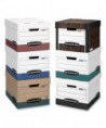 Heavy-duty, triple-end, double-side, double-bottom construction stacks up stronger and withstands frequent handling. FastFold® quick and easy assembly. Reinforced tear-resistant handles make box comfortable to carry. Deep, locking, lift-off lid stays in place for secure file storage. Smooth rolled edges add strength and prevent paper cuts. Great for storing home or office papers, and other documents, along with a variety of materials and items that you need to store for safe keeping.