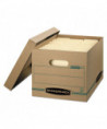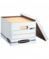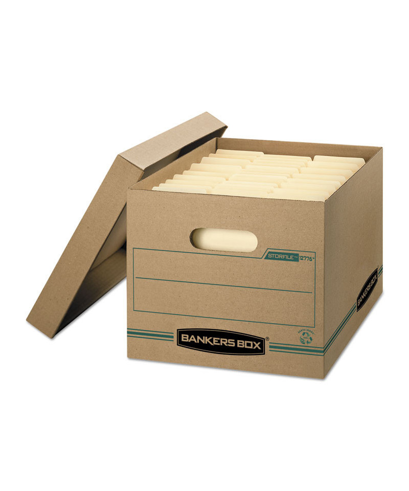 Bankers Box Store/File Basic Duty Storage Boxes feature double-end, single-side construction. Lift-off lid ships attached to prevent lid loss, then tears off for use. Light-duty, basic set-up construction for moderate stacking or use with shelving. Lift-off lid that stays attached until ready to use. Great for storing important papers, home and office items that you want to store away for future use. Made from corrugated cardboard.