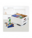 Lift-off lid ships attached to prevent lid loss, then tears off for use. Light-duty, basic set-up construction for moderate stacking or use with shelving.