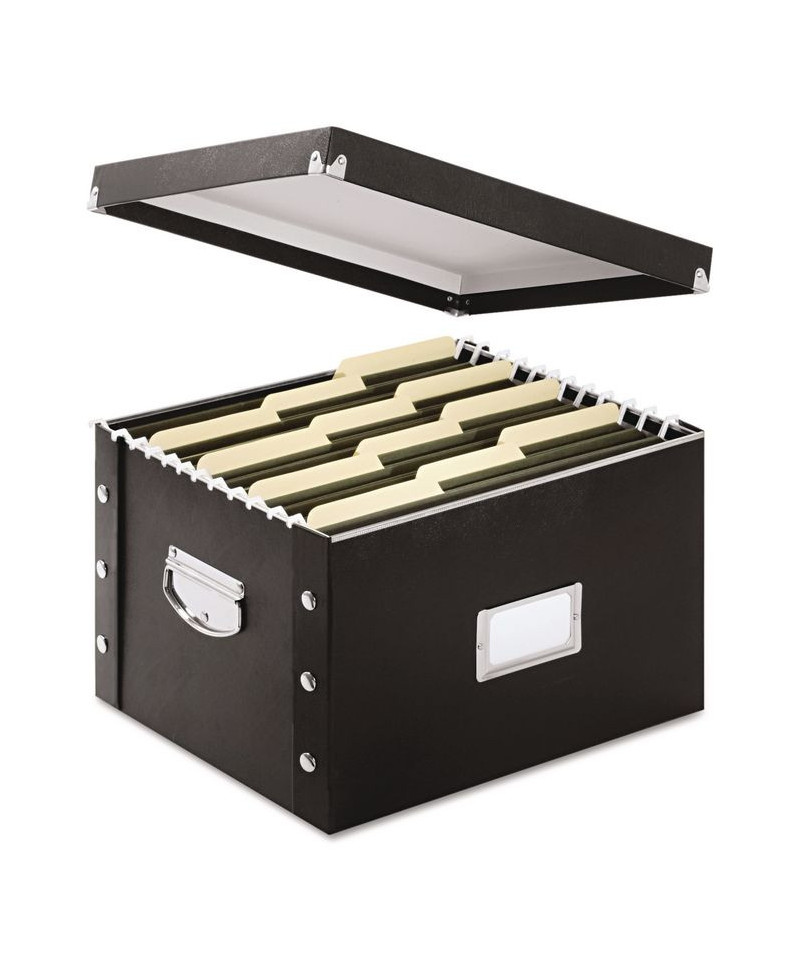 Filing is a snap with this easy-to-assemble unit. Heavy-duty metal snaps hold box together and provide strength. Accommodates hanging file folders. Includes sturdy chrome-steel handles and chrome label holder. Can be disassembled and stored flat. A perfect choice for any office.