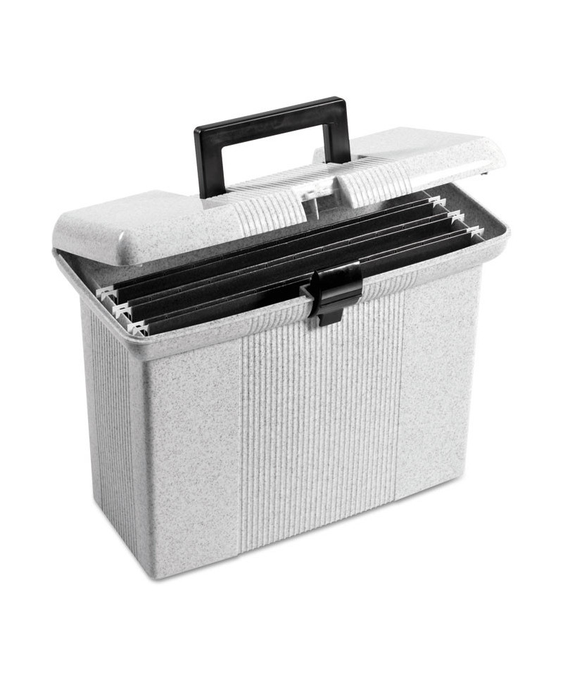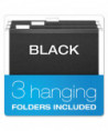 This lightweight plastic hanging file box is easy to transport. Includes three Pendaflex® letter-size hanging folders with tabs and blank inserts. Recessed handle folds down for storage.