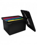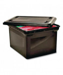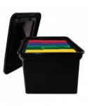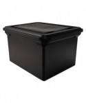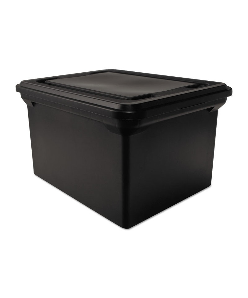 A practical solution for your filing needs! Tuck away important documents inside this roomy, stackable file tote. Thanks to the snap-tight lid, your archived files remain secure while in storage. Plastic file tote accommodates letter and legal size hanging file folders (sold separately). Product constructed of recycled content.