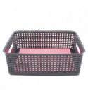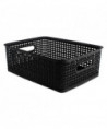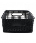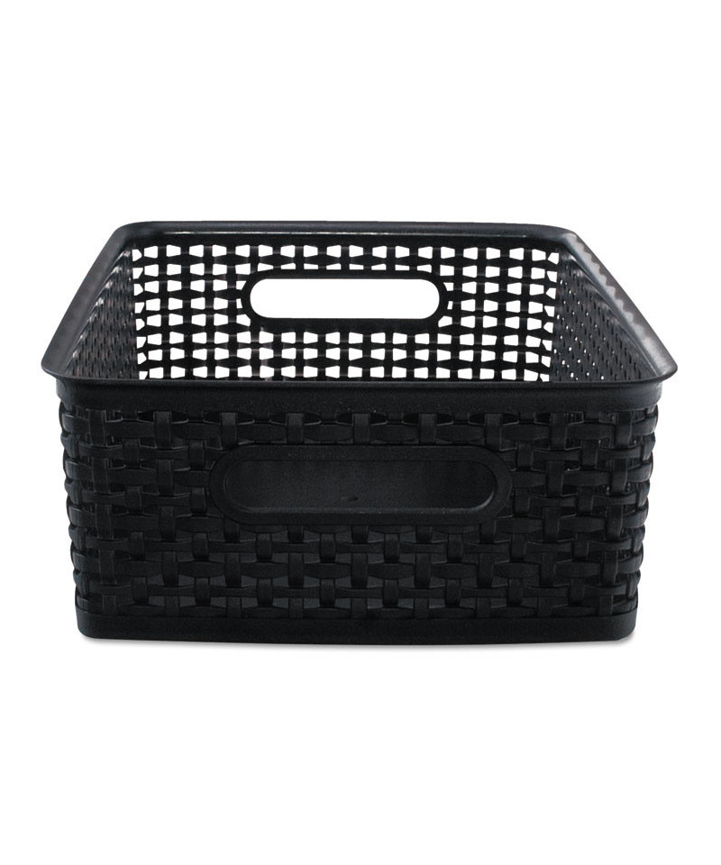 Attractive black baskets with woven design will get your workspace organized. Great for storing all sorts of items including CDs, DVDs, office supplies and more. Sturdy plastic construction.