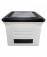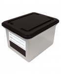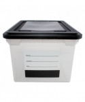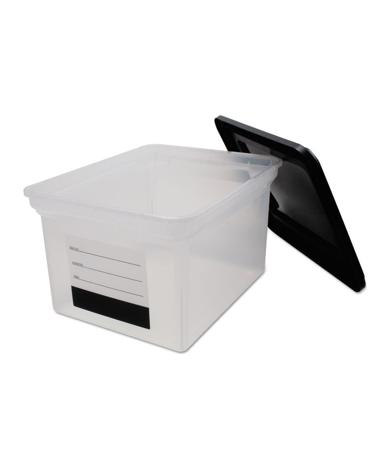 The Advantus File Tote is the classic storage bin for keeping hanging files, paperwork, or just about anything. The container features a simple write-on label, pre-installed for easy identification of contents. The lid snaps on snugly to keep contents free of dust. This file tote can hold standard-size, letter- and legal-sized paper, and hanging files (sold separately). The clear bin also allows for seeing the contents from the side.