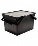 Industrial grade plastic portable file holder with see-through, hinged lid. Includes easy-lift handles and built-in tracks for letter or legal size hanging file folders (sold separately). Use file alone or set inside Heavy-Duty File Shuttle II (AVT-FS-2BHD, sold separately) for easy mobility. 40-lb. capacity.