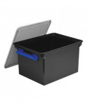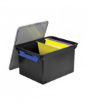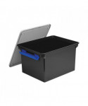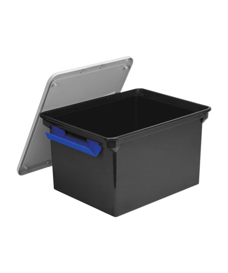 Ergonomically designed handles for easy mobility. The snap-tight, locking lid keeps important letter and legal size documents secure and protected. Stackable for convenient storage.