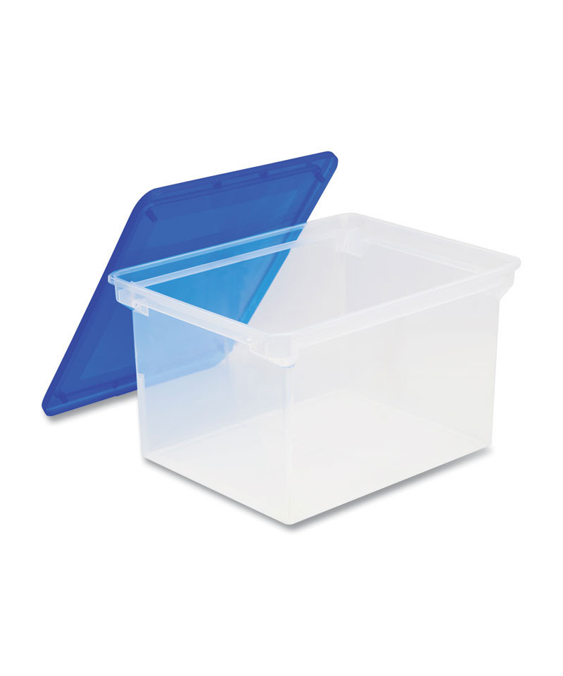 For storage that needs to be quick and simple there's the Storex Storage Tote. Accommodating of hanging folders and water-resistant, the storage tote is a great alternative to cardboard banker boxes. The snap on lid ensure that tote contents stay put through tosses and tumbles.