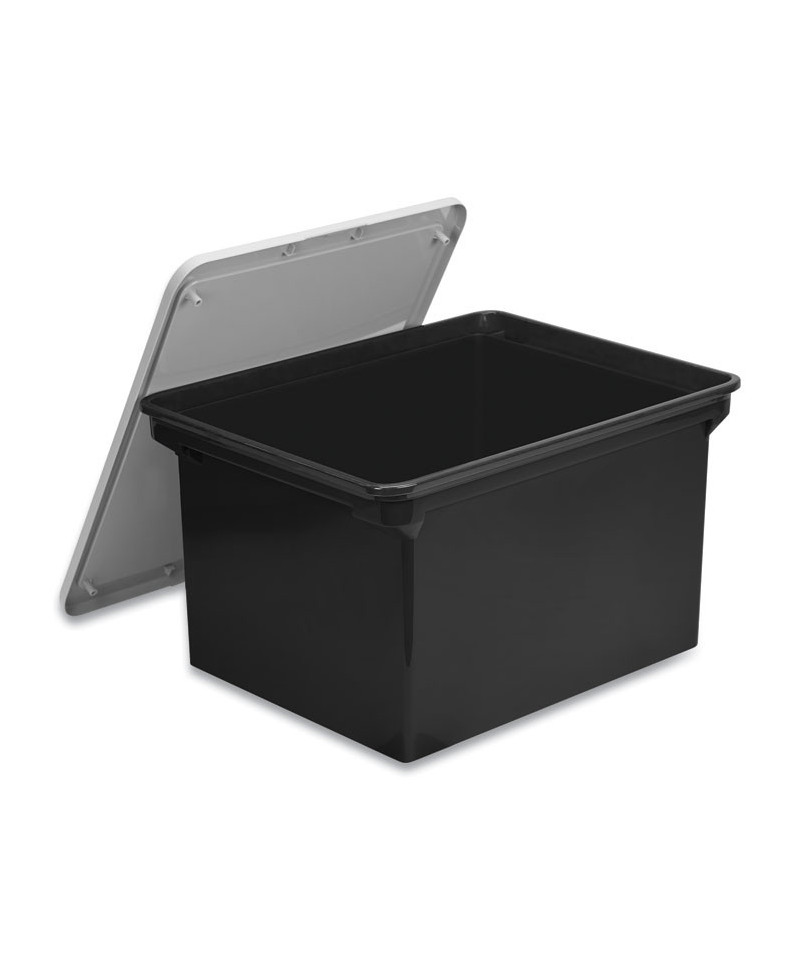 For storage that needs to be quick and simple there's the Storex Storage Tote. Accommodating of hanging folders and water-resistant, the storage tote is a great alternative to cardboard banker boxes. The snap on lid ensure that tote contents stay put through tosses and tumbles.