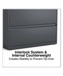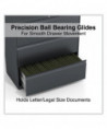 Drawers with side-to-side hang rails to accommodate letter/legal hanging files. Full drawer extension on steel ball bearing telescoping slide suspension helps drawers glide with ease. Stylish, full-width radius edge recessed pulls help to quickly open and close drawers. Anti-tipping interlock system allows only one drawer to open at a time. Single key core removable lock with two keys. Four adjustable leveling glides. Durable powder coated finish helps prevent scratches.