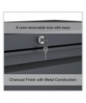 Drawers with side-to-side hang rails to accommodate letter/legal hanging files. Full drawer extension on steel ball bearing telescoping slide suspension helps drawers glide with ease. Stylish, full-width radius edge recessed pulls help to quickly open and close drawers. Anti-tipping interlock system allows only one drawer to open at a time. Single key core removable lock with two keys. Four adjustable leveling glides. Durable powder coated finish helps prevent scratches.
