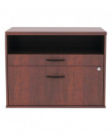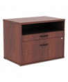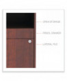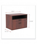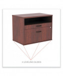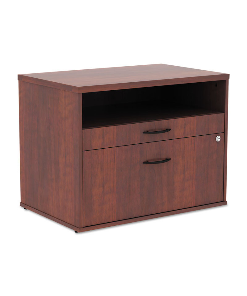 Sturdy file cabinet holds letter or legal files and is great for storage or as a low credenza with your desk. Can be used as a return to expand your desk space to create "L" or "U" shaped desk configurations. Coordinating laminates for use with Alera® Valencia, Sedina, or Open Office Desk Series. Three storage spaces including lateral file drawer, pencil drawer, and open storage. Full extension, ball-bearing slides for easy access to everything. Configurable left or right-handed. Durable woodgrain laminate is scratch, dent, and water-resistant. Leveling glides compensate for uneven floors. Two, fold-away safety keys.