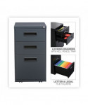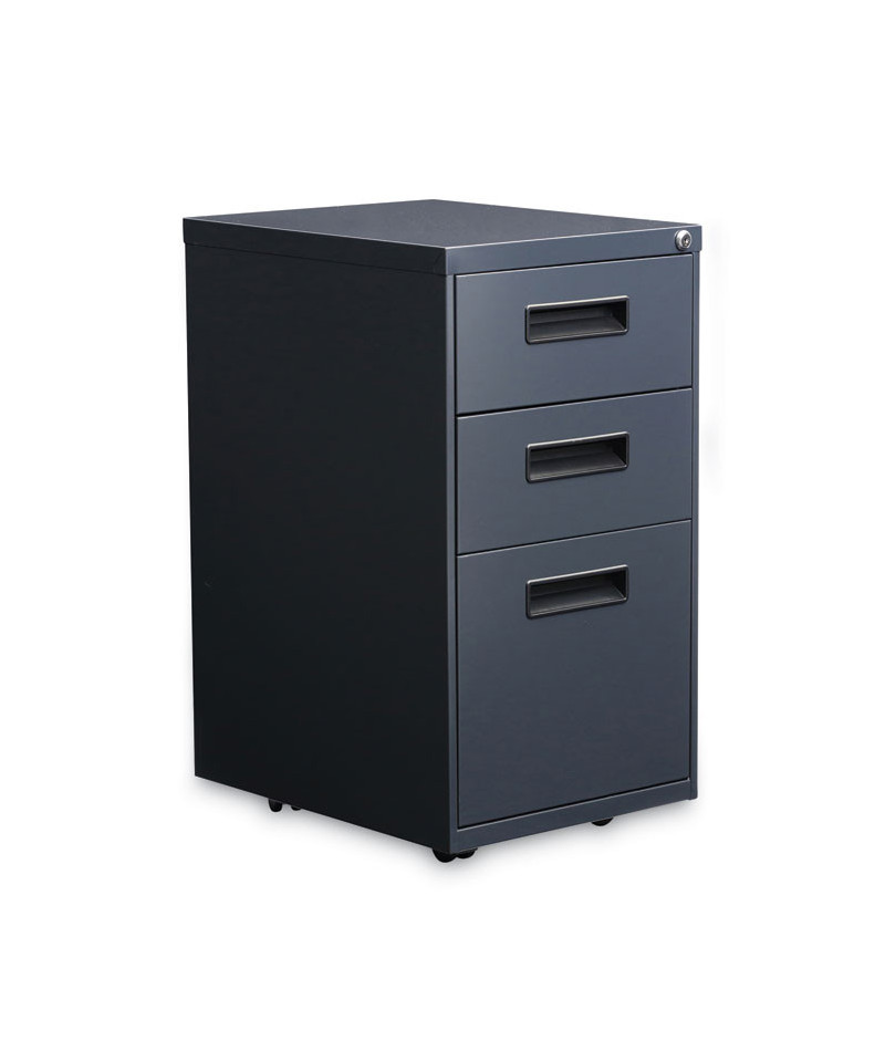 Get organized with a high-sided file cabinet with drawers that accommodate letter or legal-size filing. The counterweight prevents tipping. Visible, easy-access casters, two locking, two non-locking. Steel ball bearing slide suspension helps drawers glide smoothly and with ease. Built with 3/4 extension on box drawers and full-length extension on file drawers for maximum accessibility. Full-length pull permits easy opening. Box drawers include one divider and pencil tray.