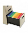 High-sided file cabinet for letter or legal-size filing. Counterweight prevents tipping. Visible, easy-access casters, two locking. Steel ball bearing slide suspension helps drawers glide smoothly and with ease. 3/4 extension on box drawers and full-length extension on file drawers for maximum accessibility. Full-length pull. Box drawers include one divider and pencil tray.