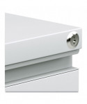 Get organized with a high-sided file cabinet with drawers that accommodate letter or legal-sized hanging files. Steel ball bearing telescoping slide suspension helps drawers glide smoothly and with ease. The counterweight prevents tipping. Equipped with four casters, two locking, two non-locking. Full-length pull permits easy opening. Single key core removable lock with two keys. Durable powder coated finish helps prevent scratches.