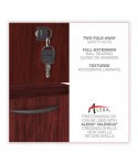Pedestal file cabinet attaches under worksurface, making it ideal for accessing files from your desk. Sturdy, four-sided drawer construction with separate front panel. Full-extension ball bearing slides on file drawer for easy access to files. Drawers lock for securing contents. Durable 3 mm edge banding protects against bumps and dings. Two, fold-away safety keys for a slimmer profile are included.