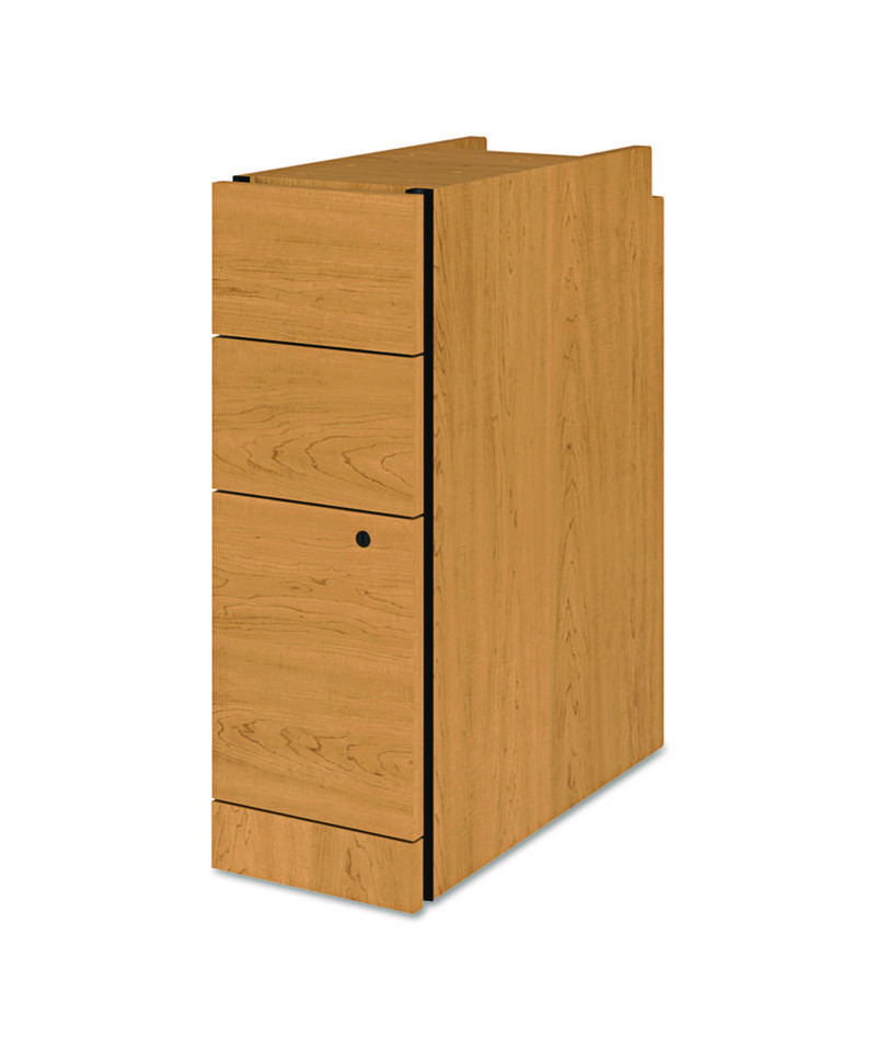 Not freestanding; designed for use under 24"-36" deep 10500/10700 Series shells. Durable, scratch-resistant laminate surfaces. File drawer extends fully and features integrated hang rails for letter- or legal-size files; box drawers extend 75%. Steel ball bearing suspension for smooth operation. Lock controls middle box drawer and file drawer; top box drawer does not lock.