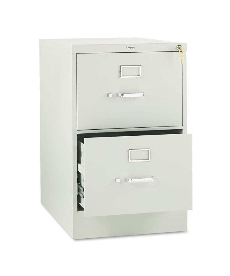 Commercial-grade files to meet your long-lasting needs. Tilt and slide follower block in each drawer keeps files upright and neat. High drawer sides add strength and serve as front-to-back hangrails. Thumb latch keeps drawers safely closed. Label holders for quick and easy identification of contents. HON® "One Key" core removable locks. Steel ball bearing suspension.