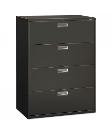 Counterweight included, where applicable, to meet ANSI/BIFMA stability requirements. Lock secures both sides of drawer. Heavy-duty, three-part, telescoping, steel ball bearing suspension for smooth drawer operation. Mechanical interlock allows only one drawer to be open at a time to inhibit tipping. Four adjustable leveling glides help compensate for uneven flooring. Drawers include side-to-side hang-rails for letter or legal size filing. Bright, anodized aluminum recessed drawer pulls. HON® "One Key" interchangeable core removable locks.