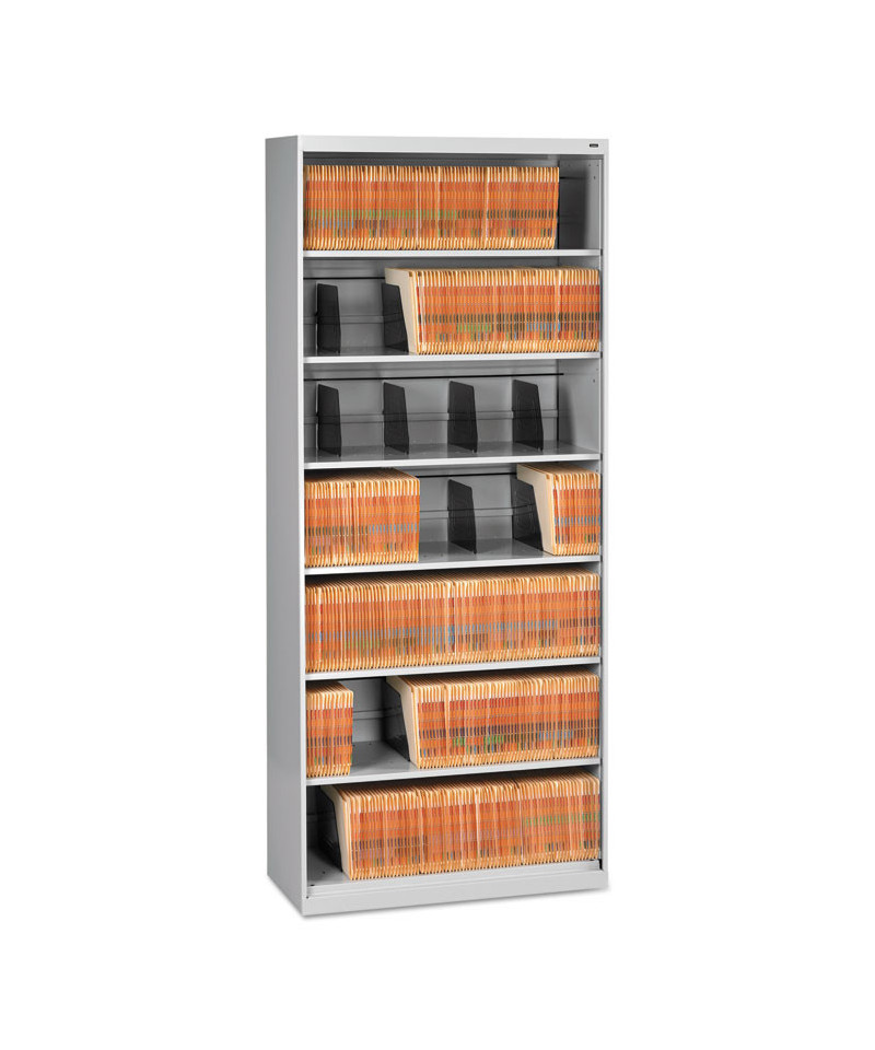Ideal for end-tab filing, the Tennsco Fixed Shelf Lateral File's fully welded, heavy-gauge all-steel construction, double-walled end panels and reinforcing gussets ensure rigid stability even when fully loaded. Its space-saving profile and surprisingly deep shelves deliver maximum filing efficiency, especially in tight spaces and along hallways, while providing excellent versatility. Organize letter- and legal-size end-tab folders without unsightly overhang. Movable metal dividers keep your folders upright and organized—each shelf features four pre-installed dividers. Durable and attractive powder-coat finish keeps the shelving unit looking professional.