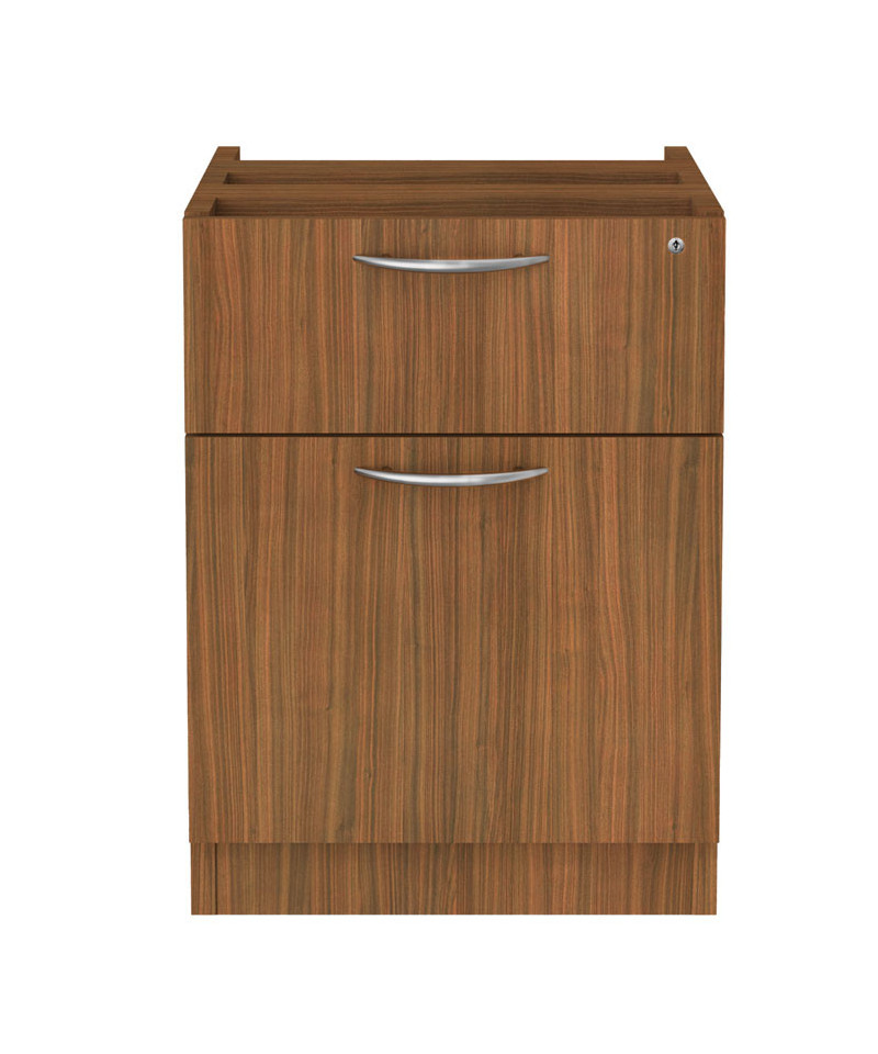 Pedestal file cabinet attaches under worksurface. Sturdy, four-sided drawer construction with separate front panel. Full-extension ball bearing slides on file drawer for easy access to files. Drawers lock for securing contents. Two, fold-away safety keys for a slimmer profile are included.