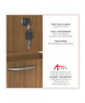 Pedestal file cabinet attaches under worksurface, making it ideal for accessing files from your desk. Sturdy, four-sided drawer construction with separate front panel. Full-extension ball bearing slides on file drawer for easy access to files. Drawers lock for securing contents. Durable 3 mm edge banding protects against bumps and dings. Two, fold-away safety keys for a slimmer profile are included.