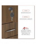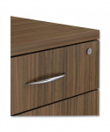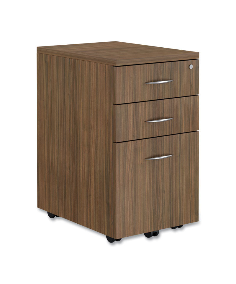 Mobile file cabinet is ready to go anywhere you need it to go. Full-extension ball bearing slides on file drawer for easy access to files. The drawers lock for securing contents. Durable 3 mm edge banding protects against bumps and dings. Five casters, two locking. Center caster prevents tipping. Fully assembled, just attach casters. Two, fold-away keys which provide a slimmer profile are included.