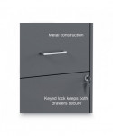 Organize your home or professional workspace with the 2-Drawer vertical file cabinet. Keep all your letter-sized documents secure and tucked away in two 18" depth drawers. This file cabinet comes equipped with one factory installed lock and key, controlling both drawers for peace of mind and security. The sleek finish and polished handles keep your office space looking contemporary and organized.