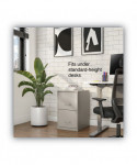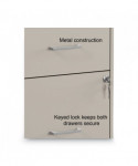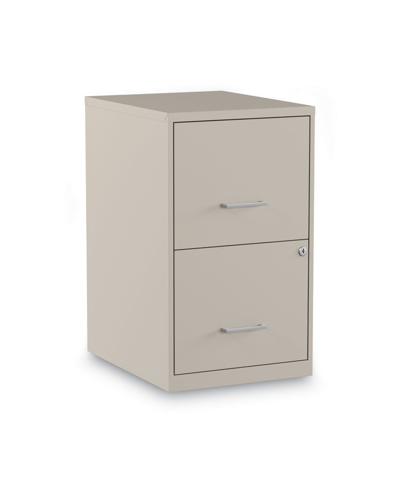Organize your home or professional workspace with the 2-Drawer vertical file cabinet. Keep all your letter-sized documents secure and tucked away in two 18" depth drawers. This file cabinet comes equipped with one factory installed lock and key, controlling both drawers for peace of mind and security. The sleek finish and polished handles keep your office space looking contemporary and organized.