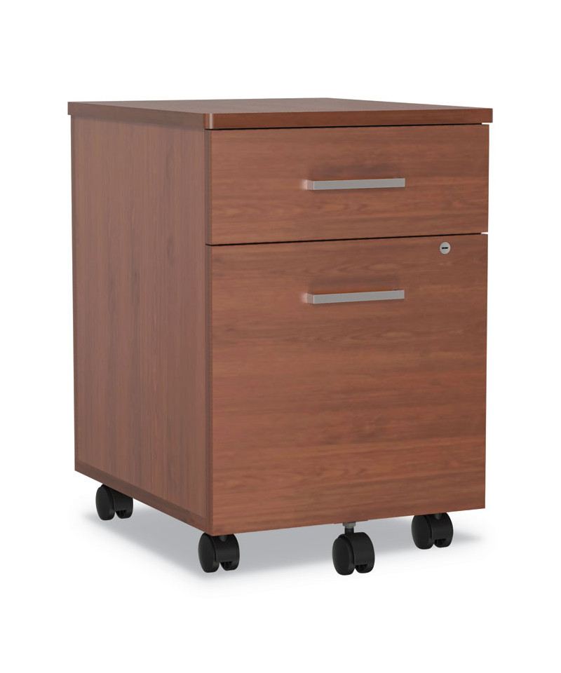 Fits under desk to conserve valuable space. Scratch- and stain-resistant wood grain laminate frame with durable edge. Full-extension locking metal drawers operate on steel ball bearing slides and accommodate letter- and legal-size files. Five-hooded dual-wheel casters for easy mobility. No assembly required.