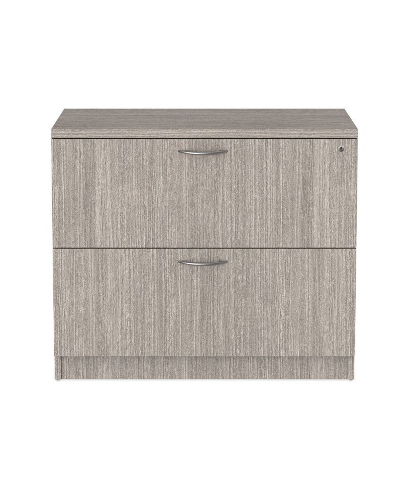 Sturdy, four-sided drawer construction file cabinet with separate front panel. Durable construction that's designed to resist water, scratches, and dents. Finish has a charcoal accent line under worksurface. Can be used as a freestanding file or in combination with credenza shell, which is sold separately. The top removes for installing under worksurface. Two, fold-away safety keys (included) for a slimmer profile.