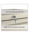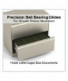 Drawers with side-to-side hang rails to accommodate letter/legal hanging files. Full drawer extension on steel ball bearing telescoping slide suspension helps drawers glide with ease. Stylish, full-width radius edge recessed pulls help to quickly open and close drawers. Anti-tipping interlock system allows only one drawer to open at a time. Single key core removable lock with two keys. Four adjustable leveling glides. Durable powder coated finish helps prevent scratches.