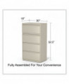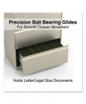 Drawers with side-to-side hang rails to accommodate letter/legal hanging files. Full drawer extension on steel ball bearing telescoping slide suspension helps drawers glide with ease. Stylish, full-width radius edge recessed pulls help to quickly open and close drawers. Anti-tipping interlock system allows only one drawer to open at a time. Single key core removable lock with two keys. Four adjustable leveling glides. Durable powder coated finish helps prevent scratches.