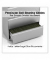 Drawers with side-to-side hang rails to accommodate letter/legal hanging files. Full drawer extension on steel ball bearing telescoping slide suspension helps drawers glide with ease. Stylish, full-width radius edge recessed pulls help to quickly open and close drawers. Anti-tipping interlock system allows only one drawer to open at a time. Single key core removable lock with two keys. Four adjustable leveling glides. Durable powder coated finish helps prevent scratches.