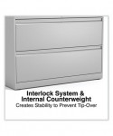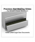 Drawers with side-to-side hang rails to accommodate letter/legal hanging files. Full drawer extension on steel ball bearing telescoping slide suspension helps drawers glide with ease. Stylish, full-width radius edge recessed pulls help to quickly open and close drawers. Anti-tipping interlock system allows only one drawer to open at a time. Single key core removable lock with two keys. Four adjustable leveling glides. Durable powder coated finish helps prevent scratches.