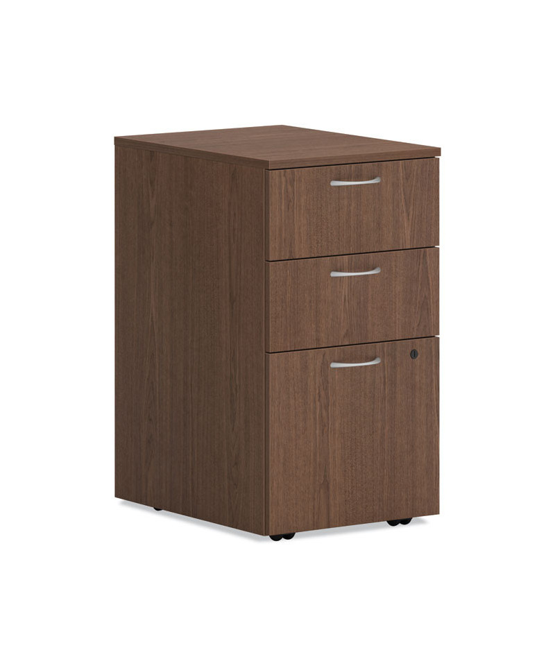Mod Mobile Pedestal, Left or Right, 3-Drawers: Box/Box/File, Legal/Letter, Sepia Walnut, 15" x 20" x 28"