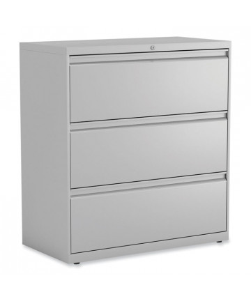 Drawers with side-to-side hang rails to accommodate letter/legal hanging files. Full drawer extension on steel ball bearing telescoping slide suspension helps drawers glide with ease. Stylish, full-width radius edge recessed pulls help to quickly open and close drawers. Anti-tipping interlock system allows only one drawer to open at a time. Single key core removable lock with two keys. Four adjustable leveling glides. Durable powder coated finish helps prevent scratches.