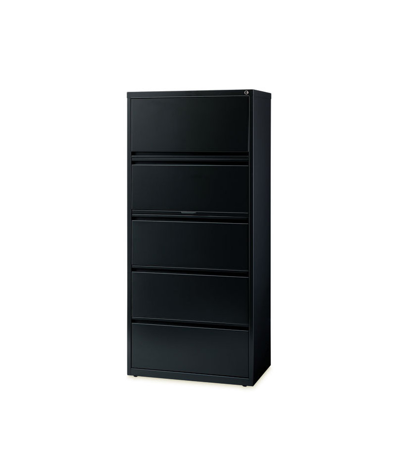 Lateral File, Five Legal/Letter/A4-Size File Drawers, 30" x 18.62" x 67.62", Black