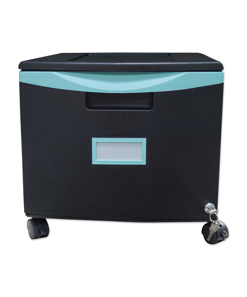 Single-Drawer Mobile Filing Cabinet, 1 Legal/Letter-Size File Drawer, Black/Teal, 14.75" x 18.25" x 12.75"