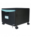 Mobile cabinet makes filing easy and efficient. Removable casters allow cabinet to be stacked on top of two-drawer mobile filing cabinet for added storage capacity. Heavy-duty plastic construction with built-in rails for letter/legal hanging files. Drawers lock individually and feature a built-in label holder.