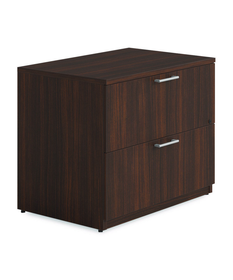 Designed to provide both style and functionality for your office or home workspace. This sturdy file cabinet, crafted from high-quality laminate with a rich finish, enhances the overall aesthetic while offering durable, long-term performance. The cabinet's sleek, banded edges not only add to its refined appearance but also provide added protection against wear and tear.With two spacious file drawers, this unit offers versatile storage for both letter-size and legal-size files, ensuring that all your important documents are organized and easily accessible. The full-extension drawers glide smoothly on ball-bearing slides, allowing you to retrieve files without hassle and maximize your storage capacity. Its combination of sleek design, practical feature and reliable construction makes it an essential addition to any professional office.