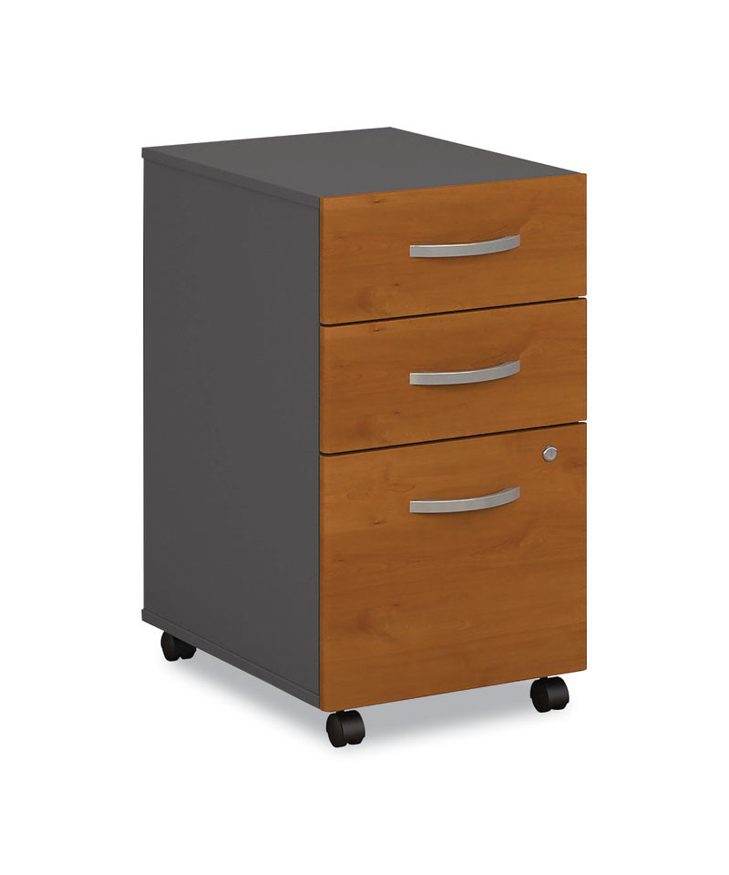 Create professional filing and storage space affordably with the Series C Collection 3 Drawer Mobile Pedestal for classic styling with clean lines. The Mobile Pedestal features two drawers for storage and one file drawer with full-extension ball bearing slides to keep your files at your fingertips. This component offers a single lock for file drawer and accommodates letter, legal or A4 files. The 3-Drawer Mobile Pedestal rolls conveniently under all Series C 36W, 48W, 60W, and 72W Desk Surfaces to minimize your office footprint. Includes dual-wheel hooded casters, two swivel - two fixed and moves to wherever you need it most. This unit is constructed with 100% thermally fused laminate for durability and superior resistance to scratches and stains.