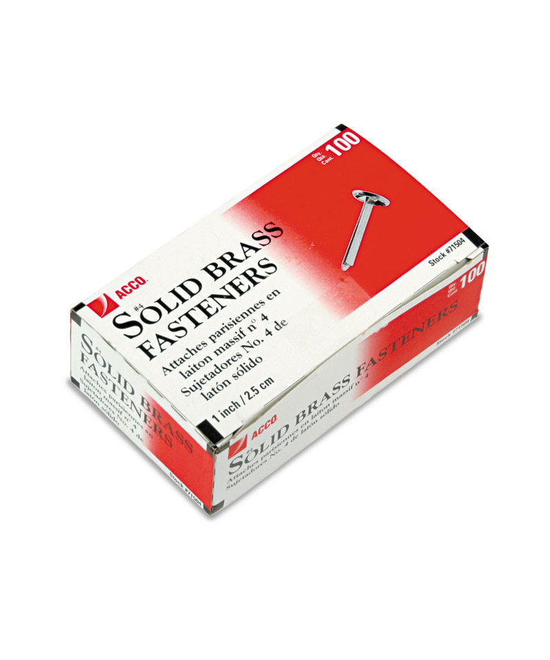 Number4 Brass Prong Paper Fasteners, 1" Capacity, Brass, 100/Box