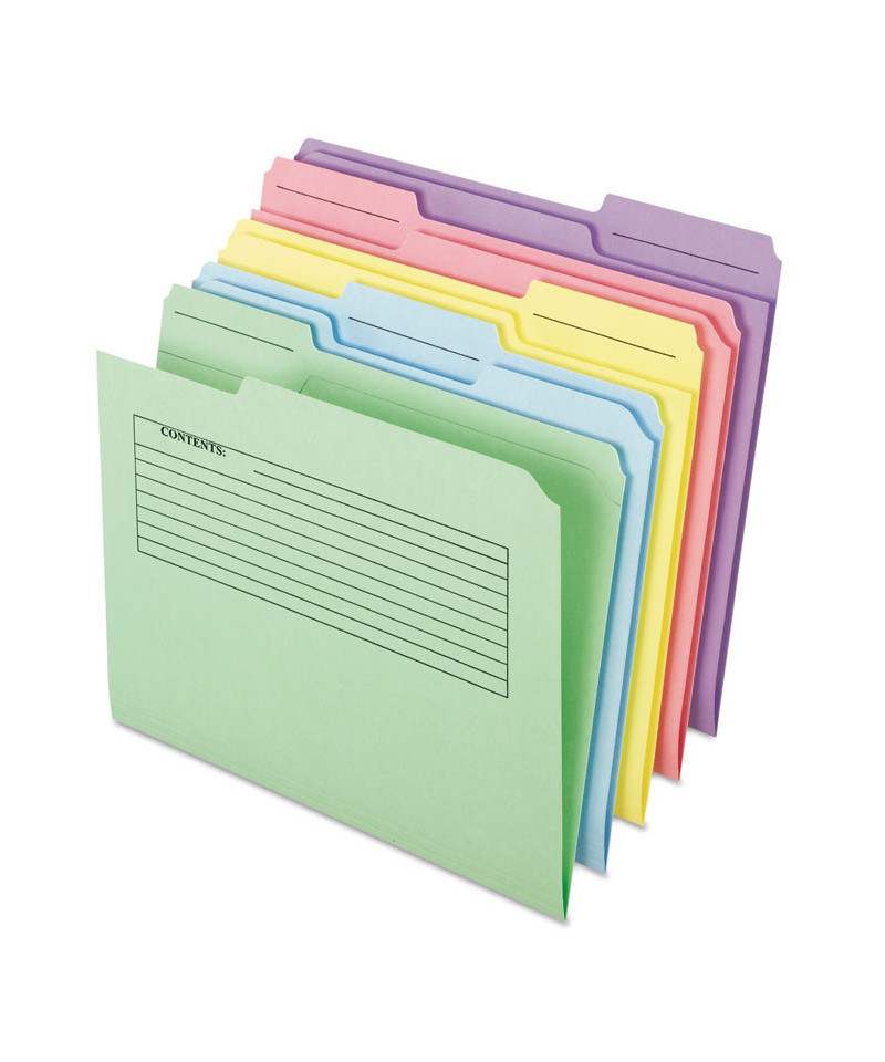 Preprinted file folders are ideal for organizing and customizing projects. The "Contents" grid on the outer flap lets you create a quick reference to make document retrieval faster and simpler. "Notes" ruling on the inside offers convenient space for meeting notes, details on enclosed subject matter or project completion dates. 11 pt. stock in an assortment of colors for color-coding ease. Acid-free.