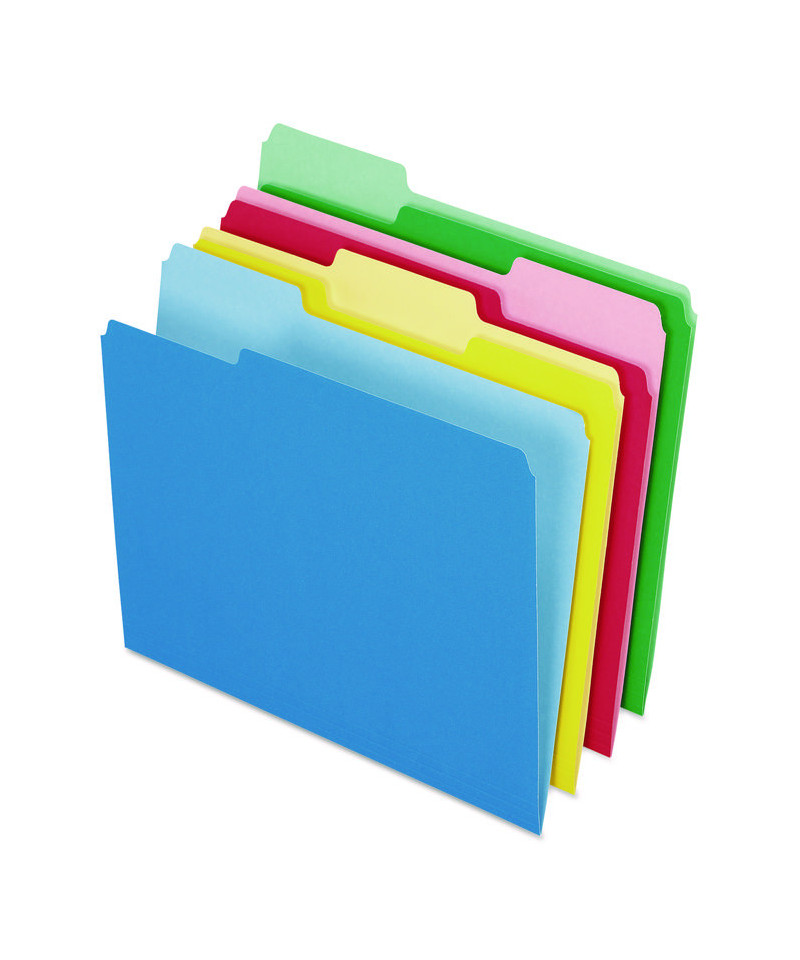 Double your options-two-tone color reverses to double the number of available colors. Various bright colors make color-coding easy for faster filing and retrieval. Interior is a lighter shade than exterior making top tabs easier to see, preventing misfiling. 11 pt. stock.